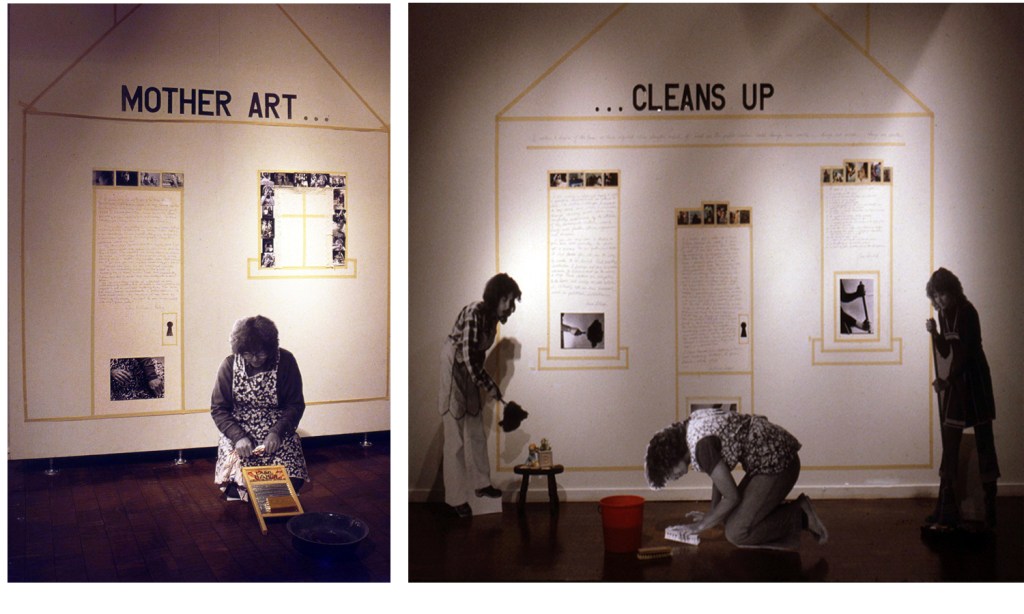 In 1979, Mother Art created an installation in the window of an appliance store in Santa Monica, California, and at a gallery at California State University, Los Angeles, on the theme of cleaning up . Mother Art incorporated personal narratives into these projects.