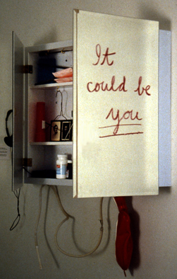 In 1981, Mother Art created a series of installations and performances dealing with the topic of women’s reproductive rights. We recorded stories of women telling about their experiences when abortion was illegal, and incorporated these audio recordings into an installation in a janitor’s closet at SPARC Gallery in Venice, California, as well as a performance in Santa Monica, CA.