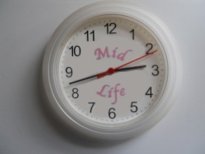 We used a clock as a metaphor with the words “Mid Life” in its center. The clock was surrounded